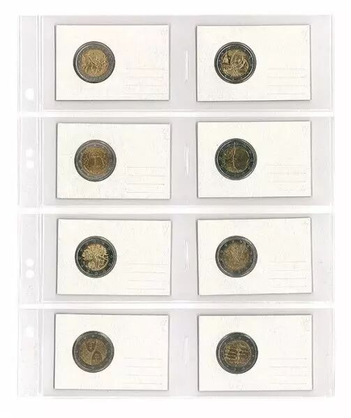 Ces feuilles numismatiques transparentes en PVC rigide exempt de plastifiant acide sont utilisables d'un côté. Ainsi, le contenu est visible recto-verso. Grâce à leur perforation universelle, les feuilles sont adaptées aux reliures "MULTI COLLECT" (Réf. 1302-), "PUBLICA M COLOR" (Réf. S3542-), ainsi qu'à bien d'autres classeurs de rangement courants.