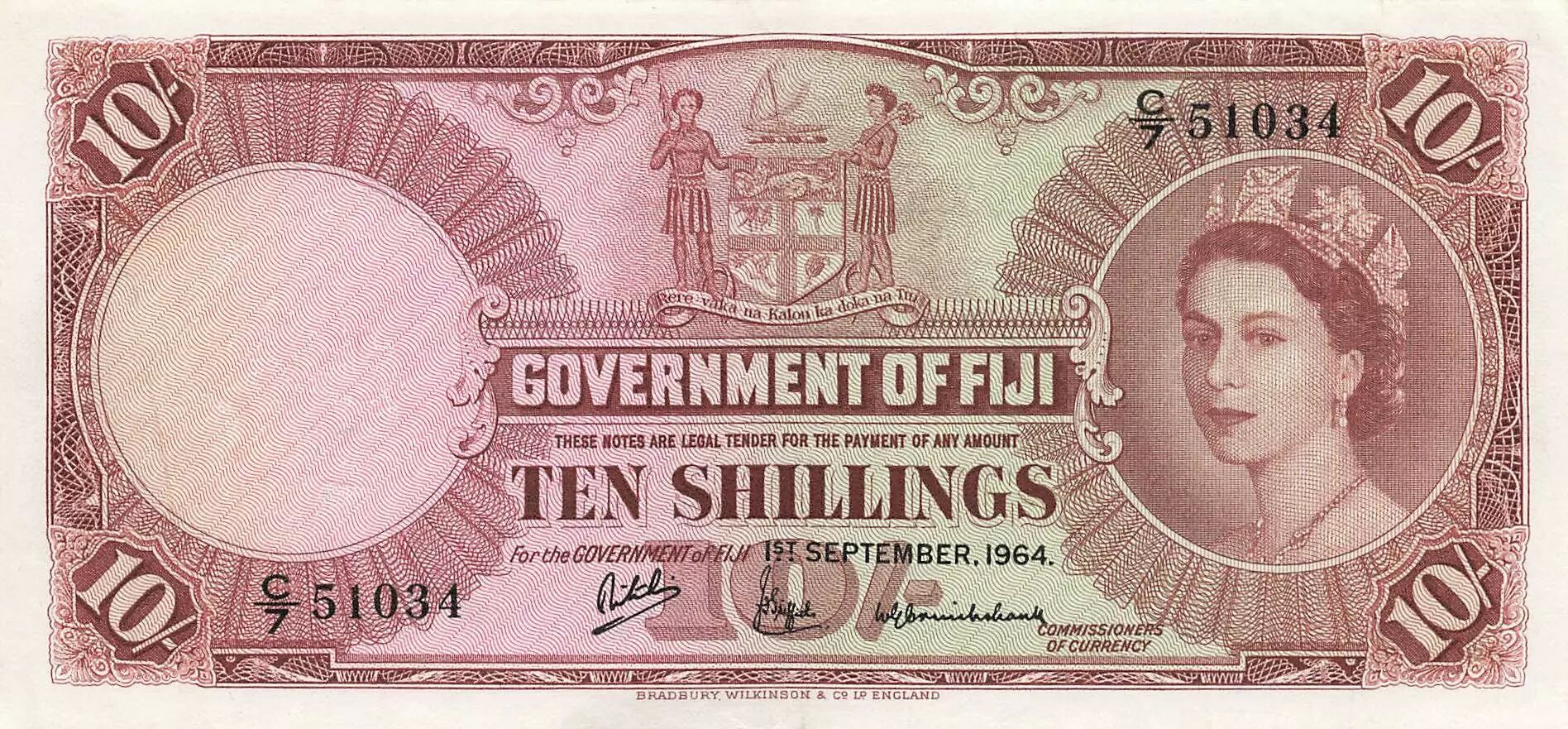 Accueil > Archivage > archivage-Billets du Monde > Fidji 10 Shillings - Elisabeth II - 01-09-1964 - P.52d