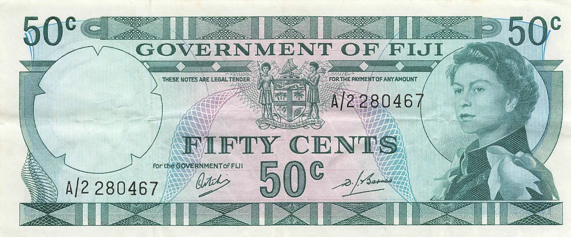 Accueil > Billets du Monde > Billets d'Océanie > Fidji > Fidji 50 Cents - Elisabeth II - ND (1969) - P.58a