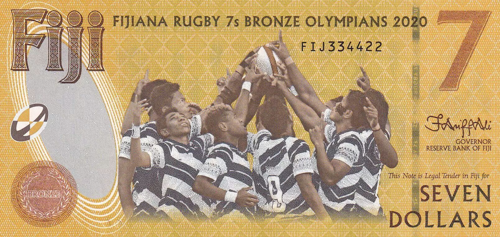 Billet Fidji 7 Dollars - Médaille d'Or et de Bronze de Rugby - JO Tokyo 2020 - P.NEW