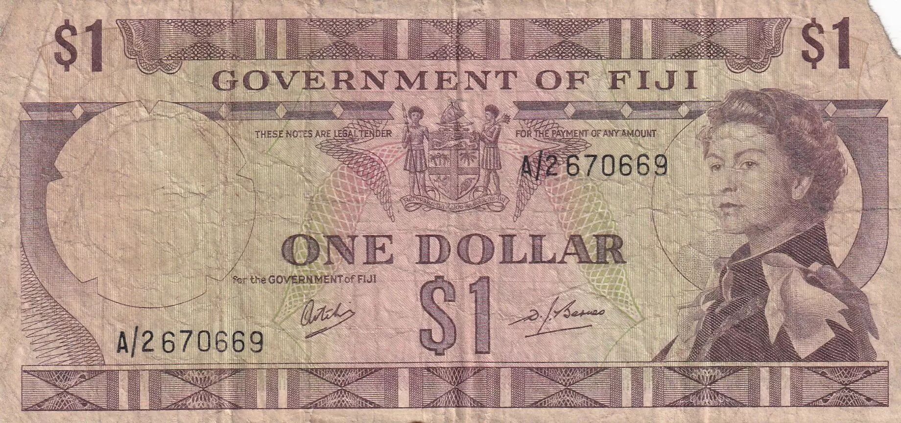 Home > > Fiji 1 Dollar - Elizabeth II - 1969 - Serial A/2