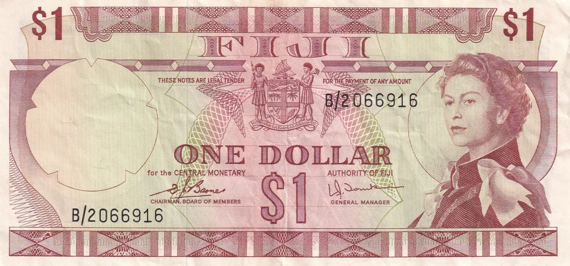 Banknote Fiji 1 Dollar - Elizabeth II - 1974 - Serial B/2