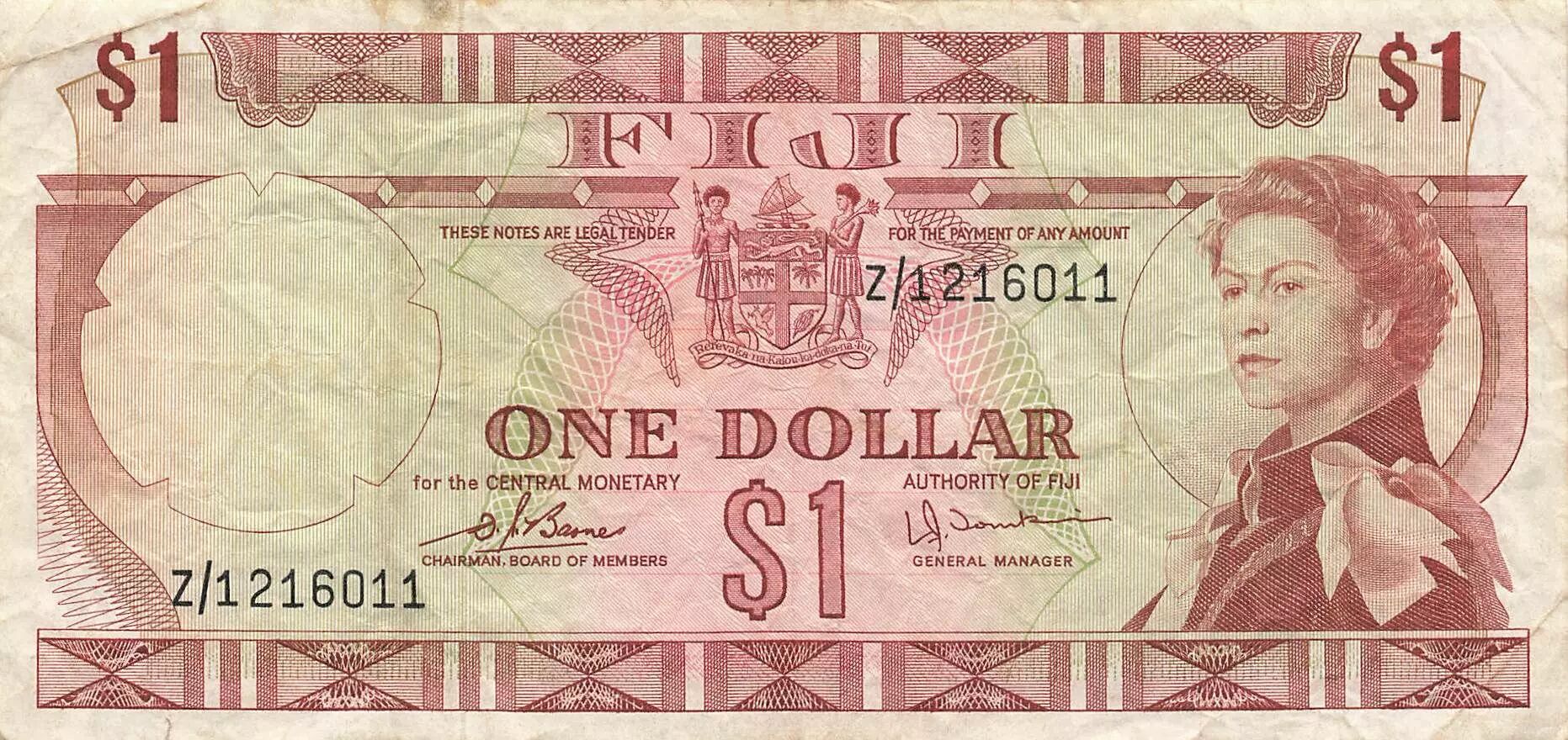 Home > World Banknotes > Oceania Banknotes > Fiji > Fiji 1 Dollar - Elizabeth II - ND (1974) - Replacement - P.71br