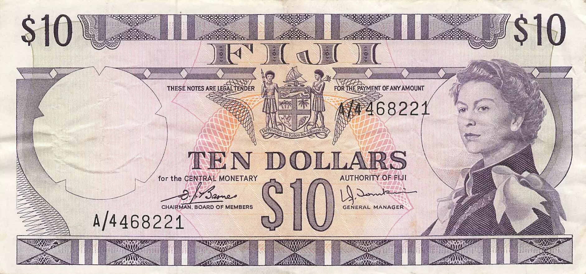 Home > World Banknotes > Oceania Banknotes > Fiji > Fiji 10 Dollars - Elizabeth II - ND (1974) - P.74