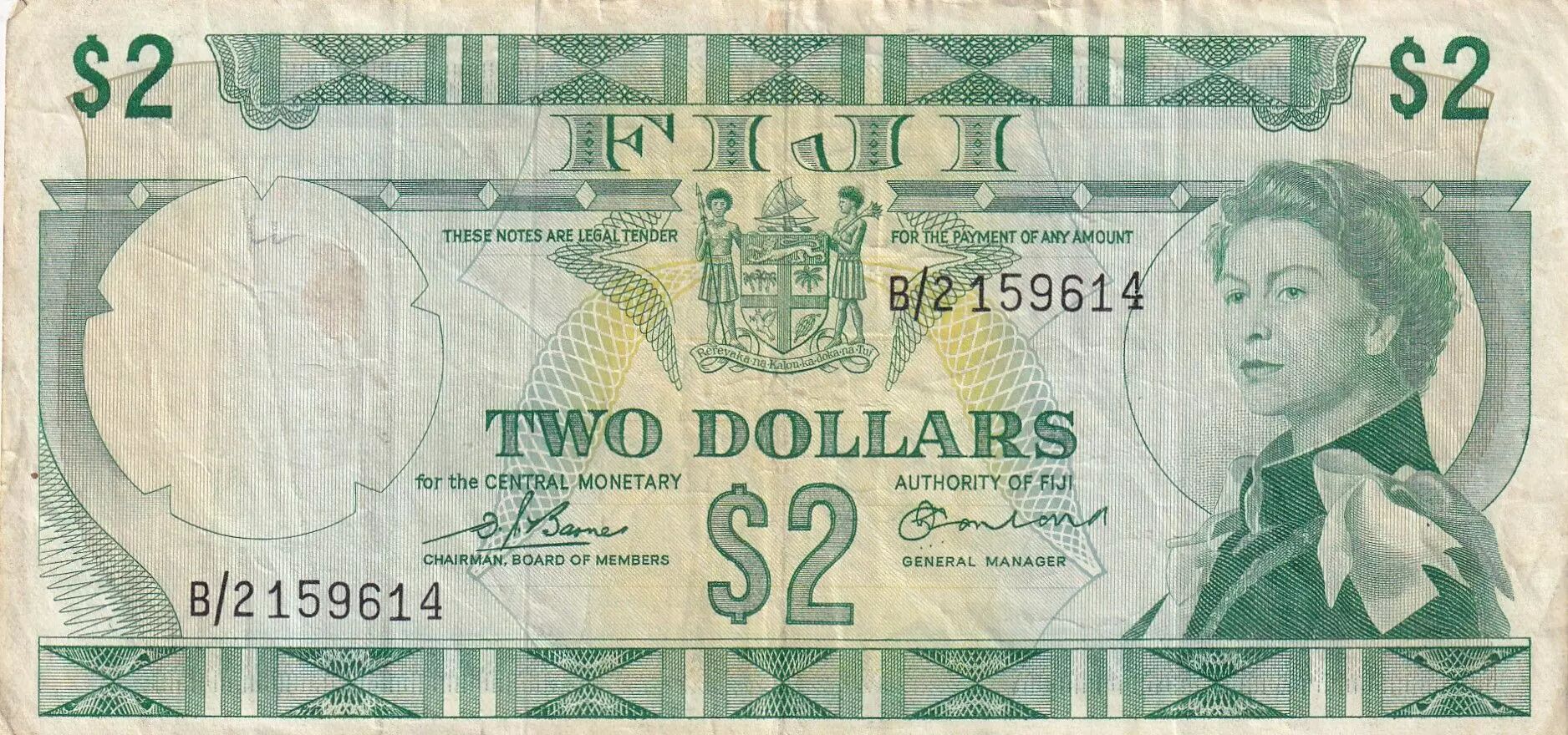 Home > > Fiji 2 Dollars - Elizabeth II - 1974 - Serial B/2