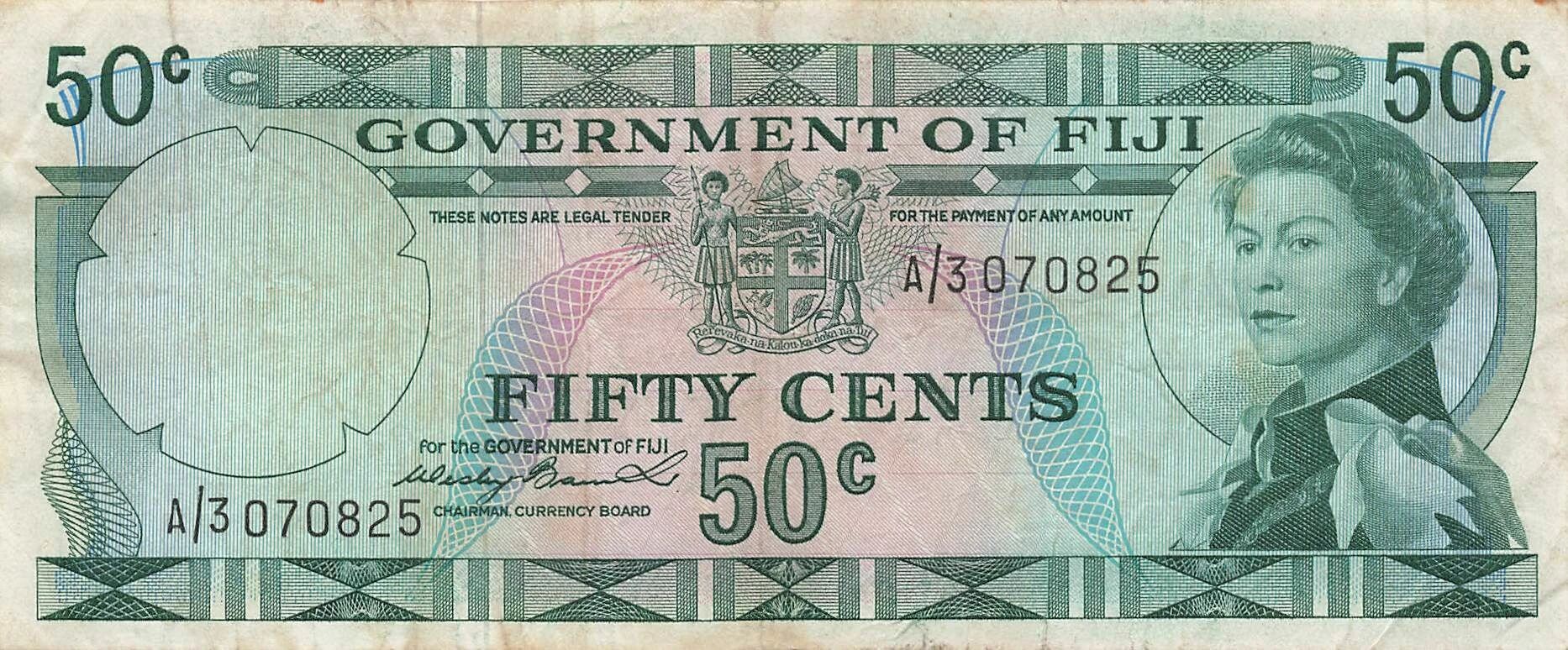 Home > World Banknotes > Oceania Banknotes > Fiji > Fiji 50 Cents - Elizabeth II - ND (1971) - P.64a