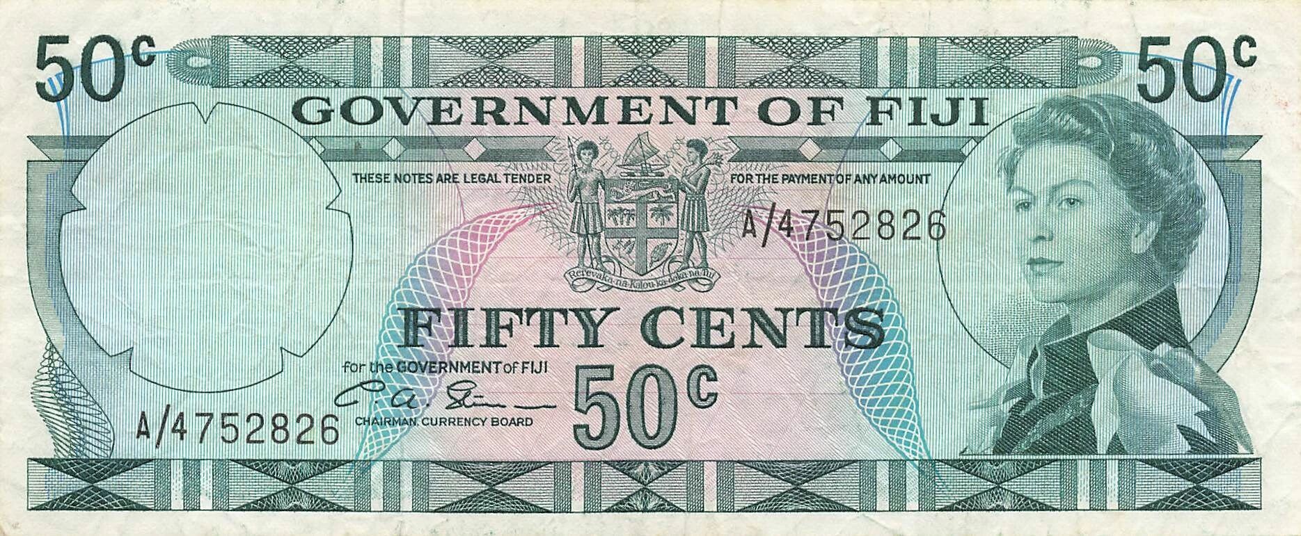 Home > World Banknotes > Oceania Banknotes > Fiji > Fiji 50 Cents - Elizabeth II - ND (1971) - P.64b