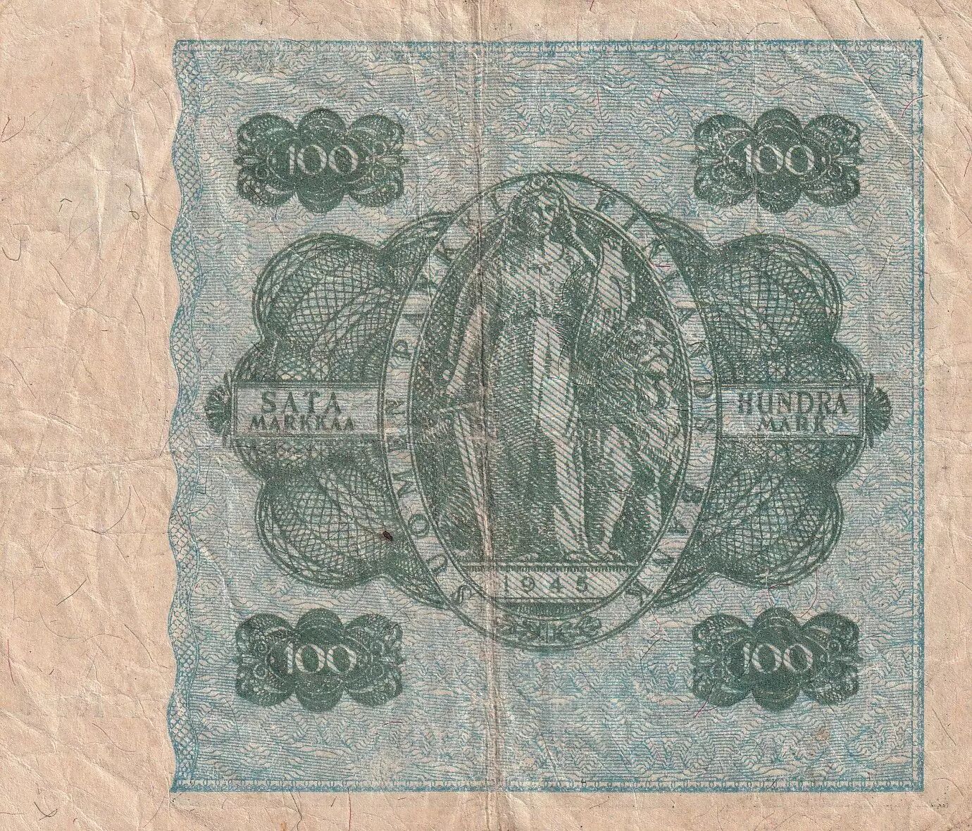 Banknote Finland 100 Markkaa - Bue & green - Litt B - 1945 (1948) - P.88