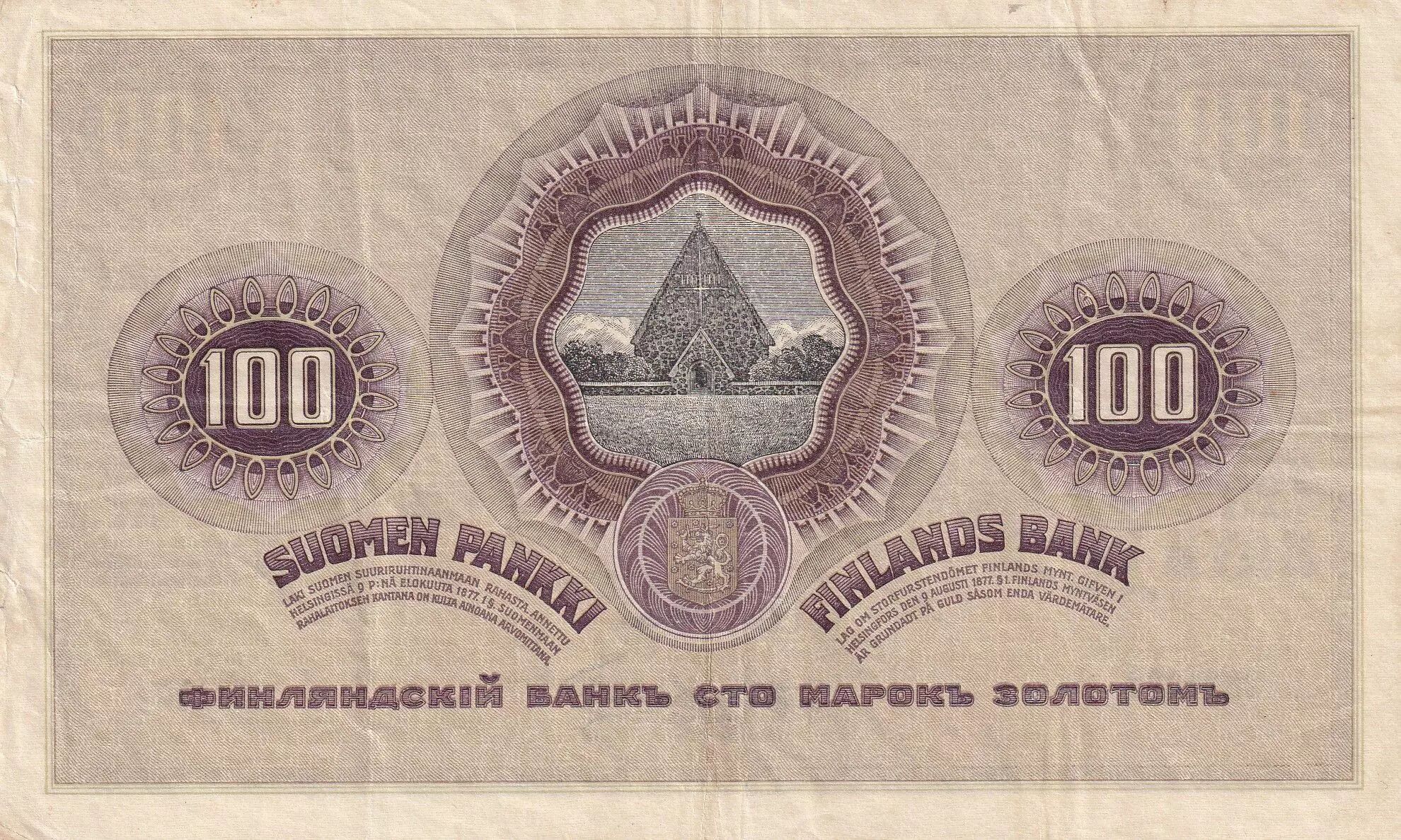 Banknote Finland 100 Markkaa - Farmers and horses 1909 (ND 1918)