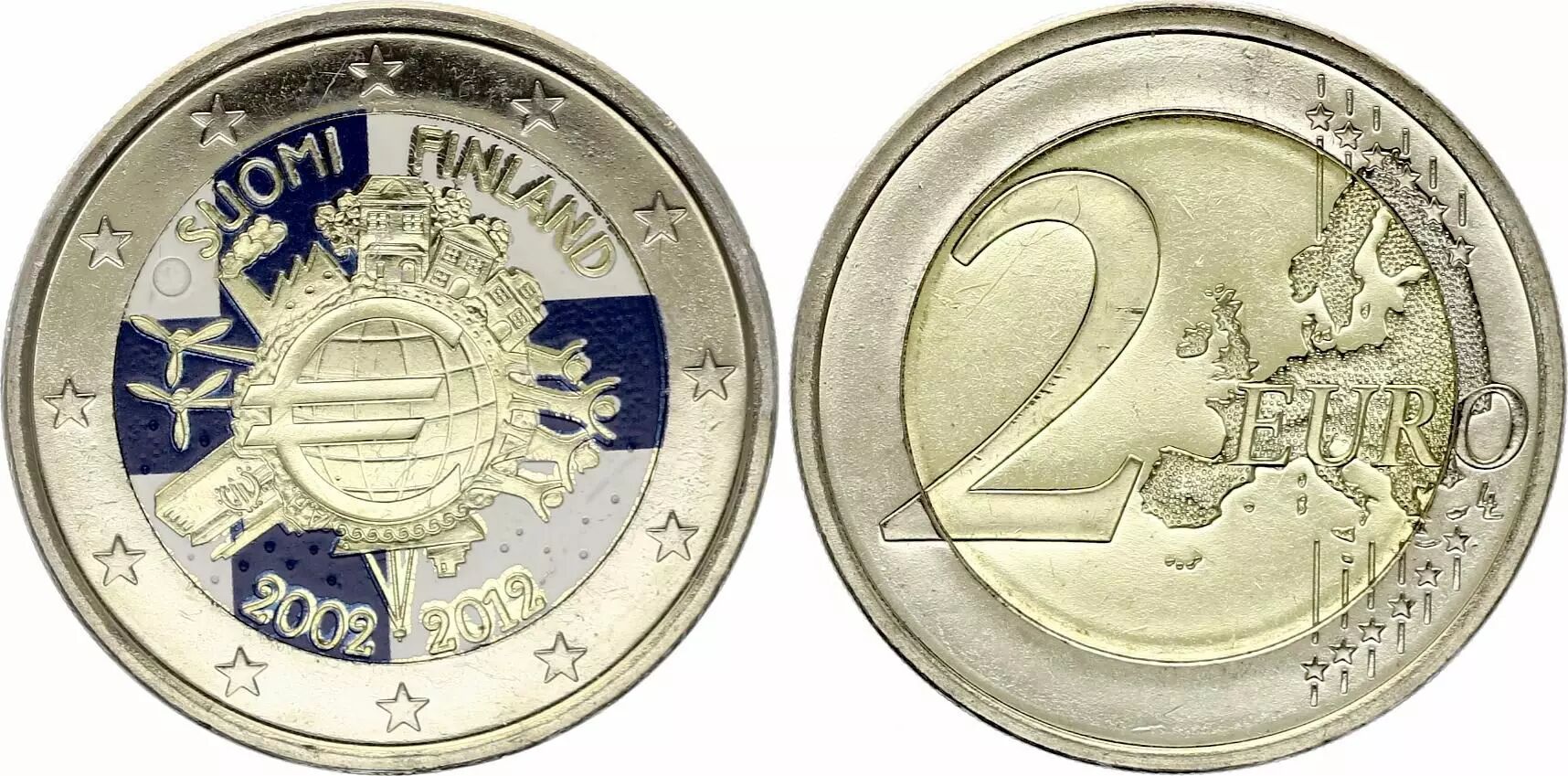 Coin Finland 2 Euros - 10 years of the Euro - Colorised - 2012