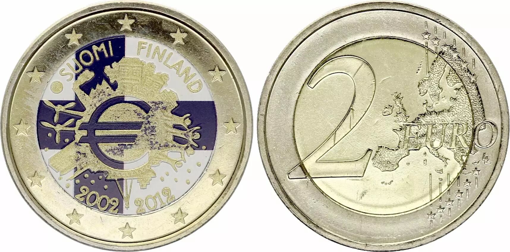 Coin Finland 2 Euros - 10 years of the Euro - Colorised - 2012