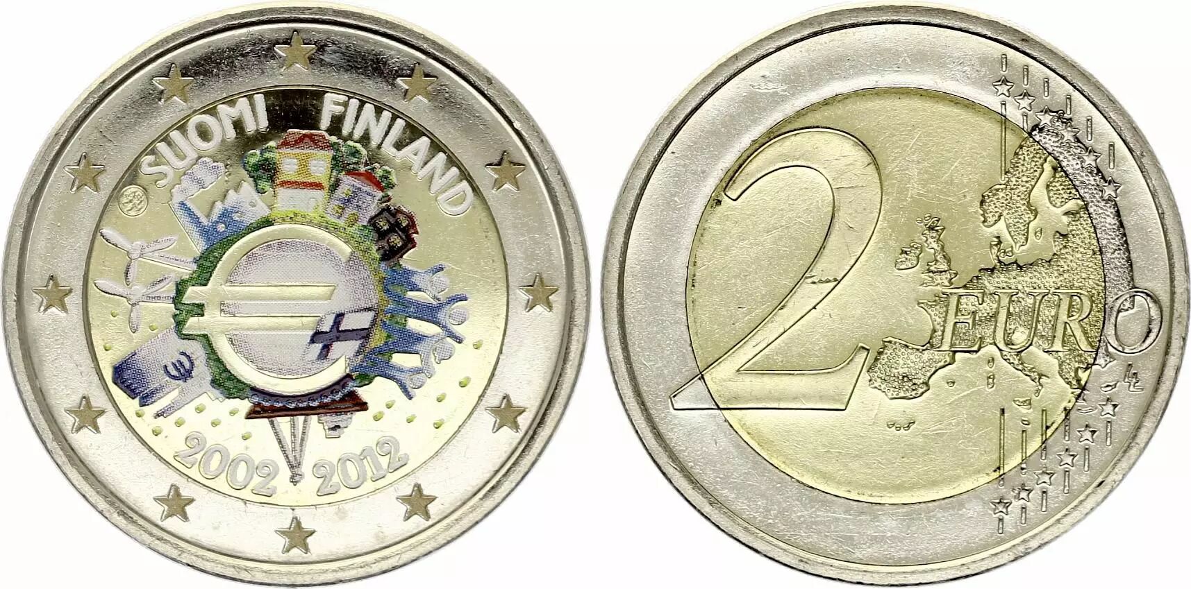 Coin Finland 2 Euros - 10 years of the Euro - Colorised - 2012