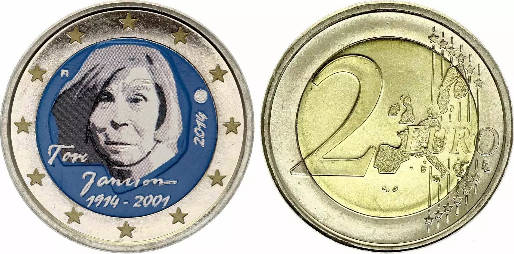 Coin Finland 2 Euros - Tove Jansson - Colorised - 2014