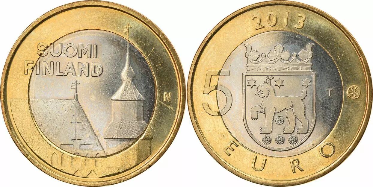 Coin Finland 5 Euro Church of St Laurent in Häme - 2013