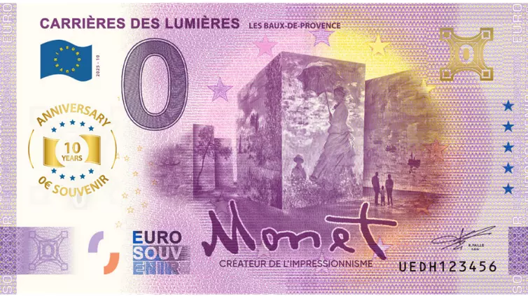France 0 Euro Souvenir Banknote - Carrières Lumières - MONET - Anniversary 10 years - 2025 Size : 133 X 72 mmUnique numbering