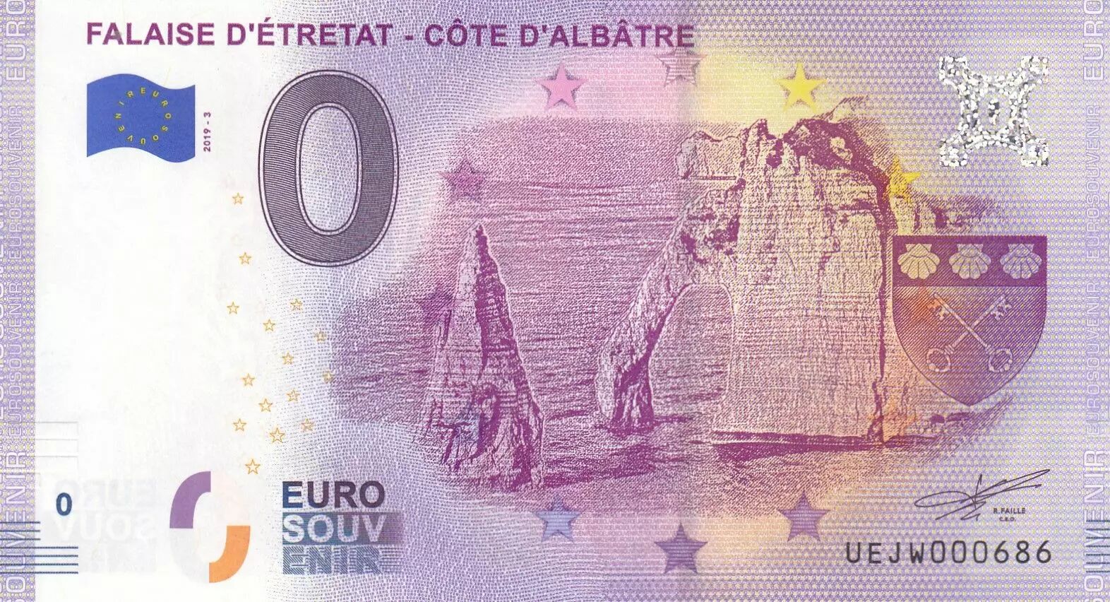 France 0 Euro Souvenir Banknote - Falaise D'étretat - Albatre Coast - 2019 Size : 133 X 72 mmUnique numbering