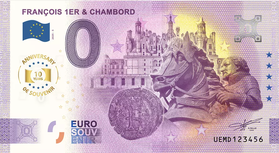 Ce billet commémoratif de zéro euro est émis en France et daté de 2025. Il s'agit d'un billet de type Euro Souvenir, version Anniversary, conçu pour commémorer un événement ou une personnalité spécifique.