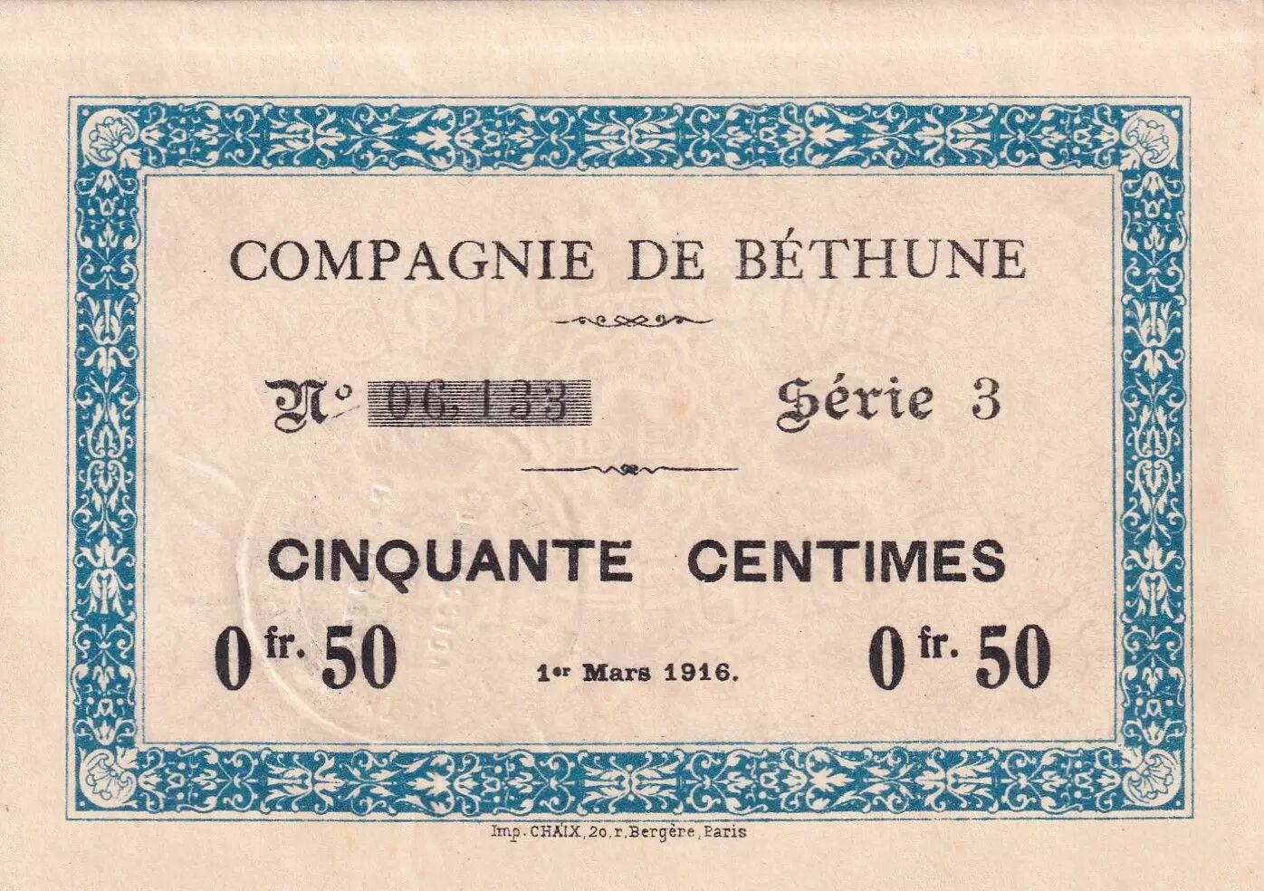 Accueil > Archivage > France 0.50 centimes - Compagnie de Béthune - 01-03-1916 - Série 3