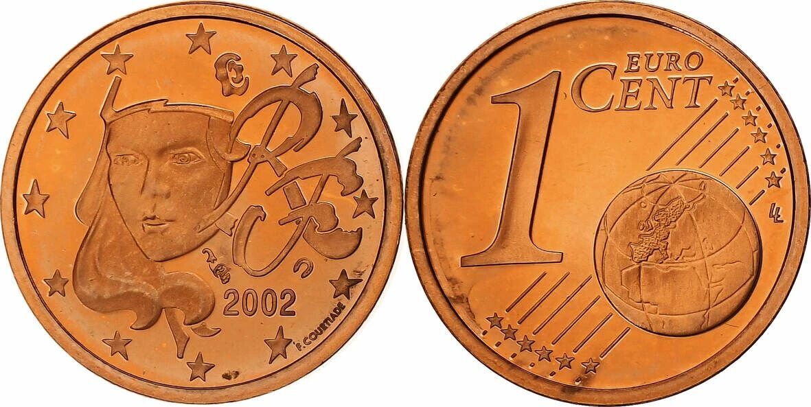 This 1 cent coin, minted in France in 2002, is a collectible coin from a Proof set. It is made of copper-plated steel, weighs 2.3 grams and has a diameter of 16.25 millimeters.