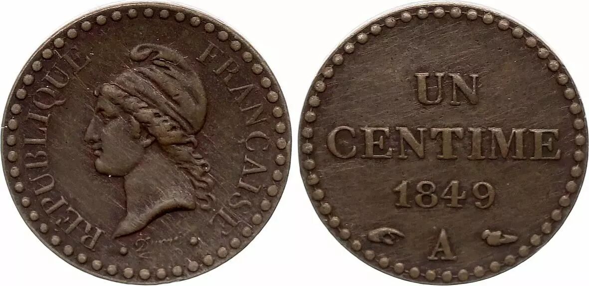 Home > > France 1 Centime Dupré - 2th Republic - 1849 A