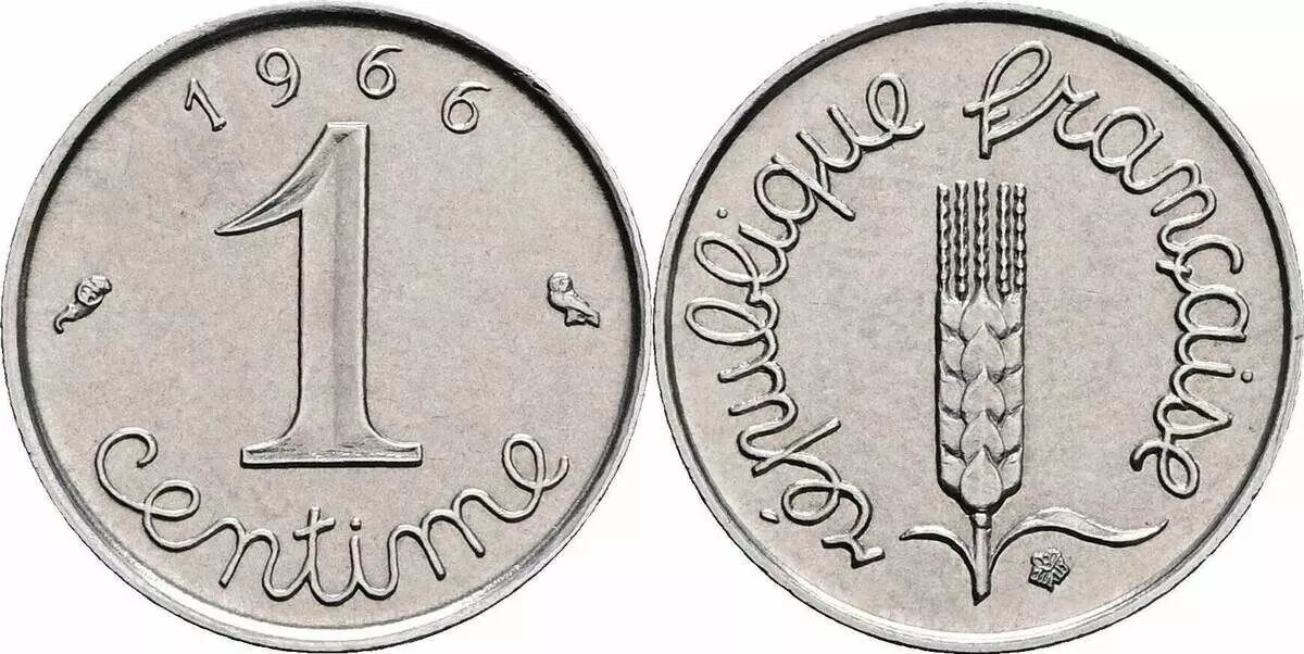 The 1 centime coin, minted in France in 1967, is a divisional coin. It is made of steel. It weighs 1.65 grams and its diameter is 15 millimeters.