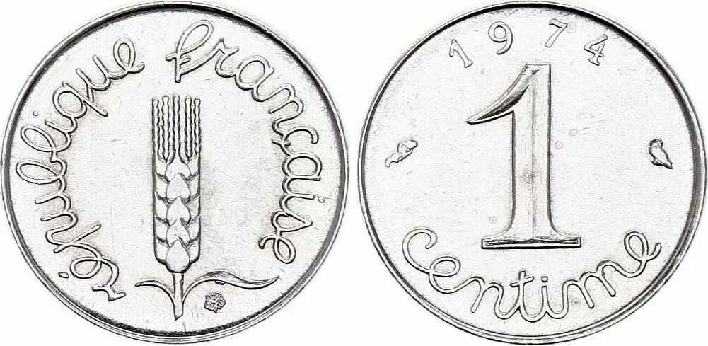 Pièce France 1 Centime Epi - 1974 - Rebord