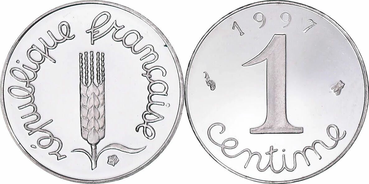 This 1-cent coin, minted in France in 1997, is an example from the "Epi" (Wheat Ear) series. It was produced with a "Proof" (Belle Épreuve) minting quality, which indicates special care taken in its manufacture and a superior quality compared to common circulation coins.