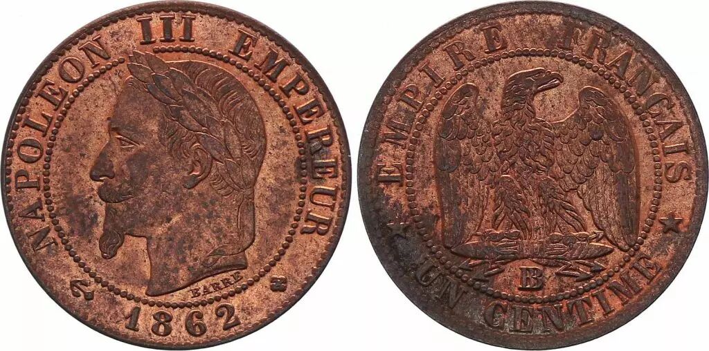 Coin France 1 Centime Napoleon III - Laureate Head -1862 BB - 5 th ex