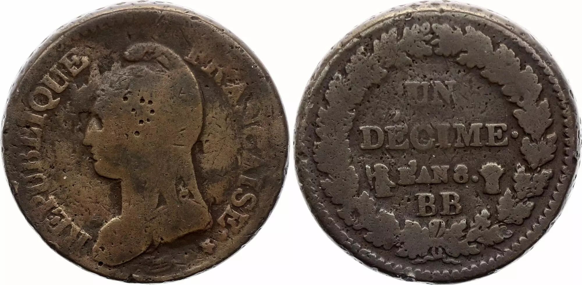 Pièce France 1 Décime Dupré - An 8 BB Strasbourg