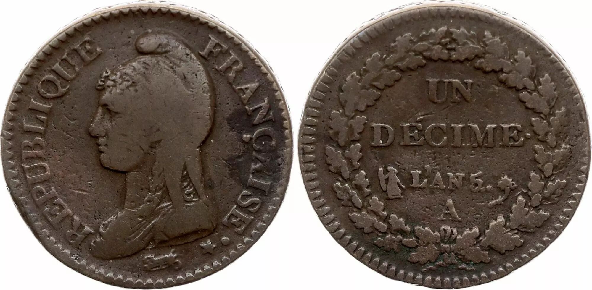 Home > > France 1 Decime Dupre - Liberty head - An 5 A Paris