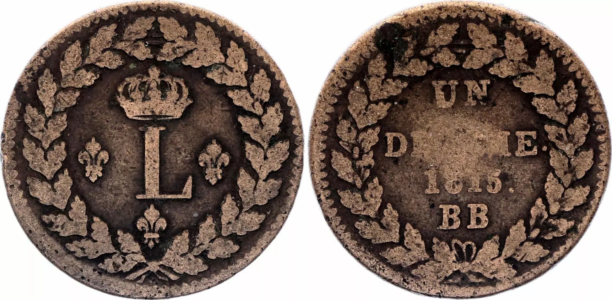 Pièce France 1 Décime - Louis XVIII - Blocus de Strabourg 1815 BB