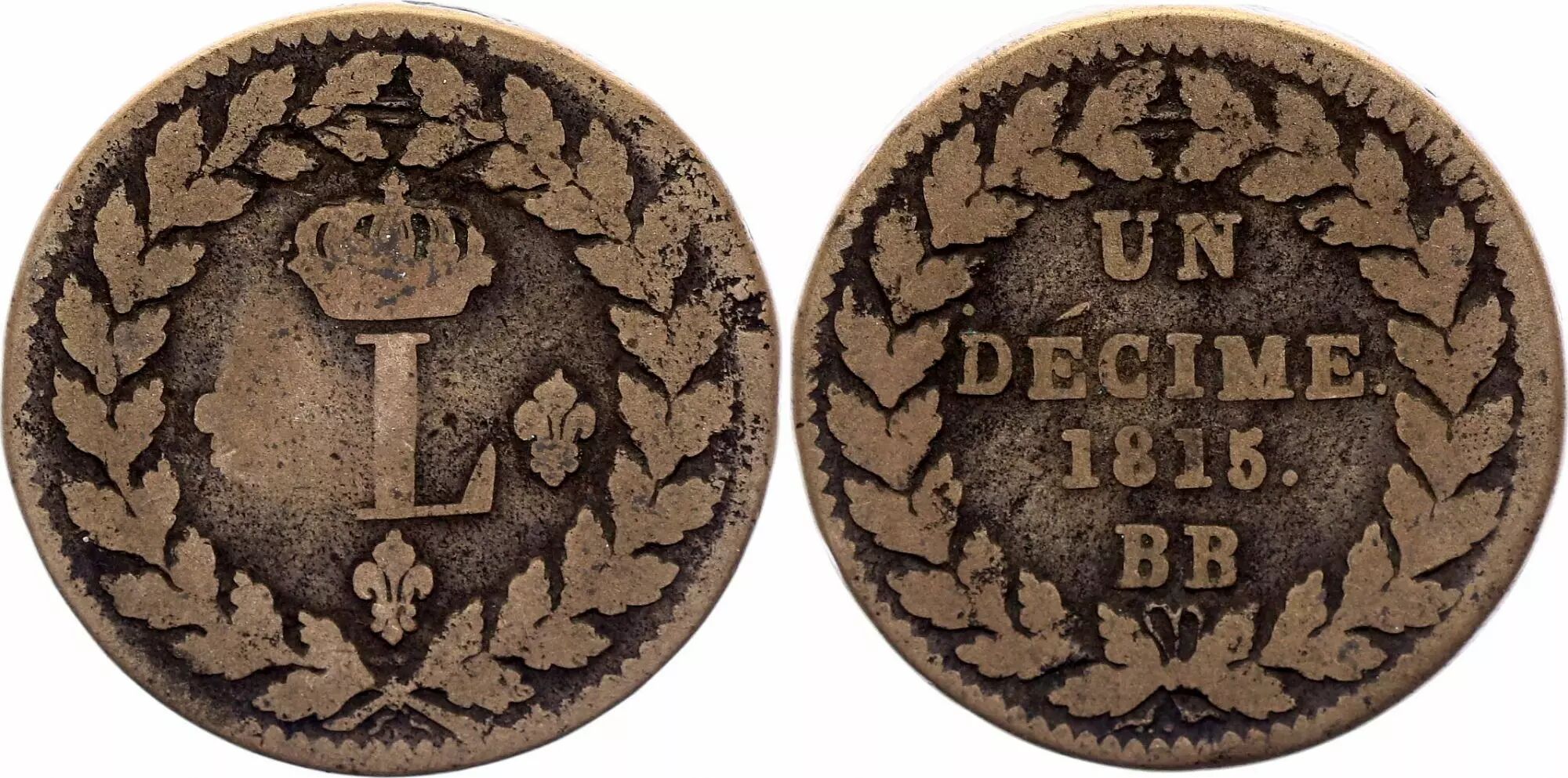 Coin France 1 Decime Louis XVIII - Strasbourg Blockade - 1815 BB