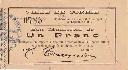 Billet France 1 F Corbie