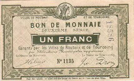 Banknote France 1 F Roubaix-Tourcoing