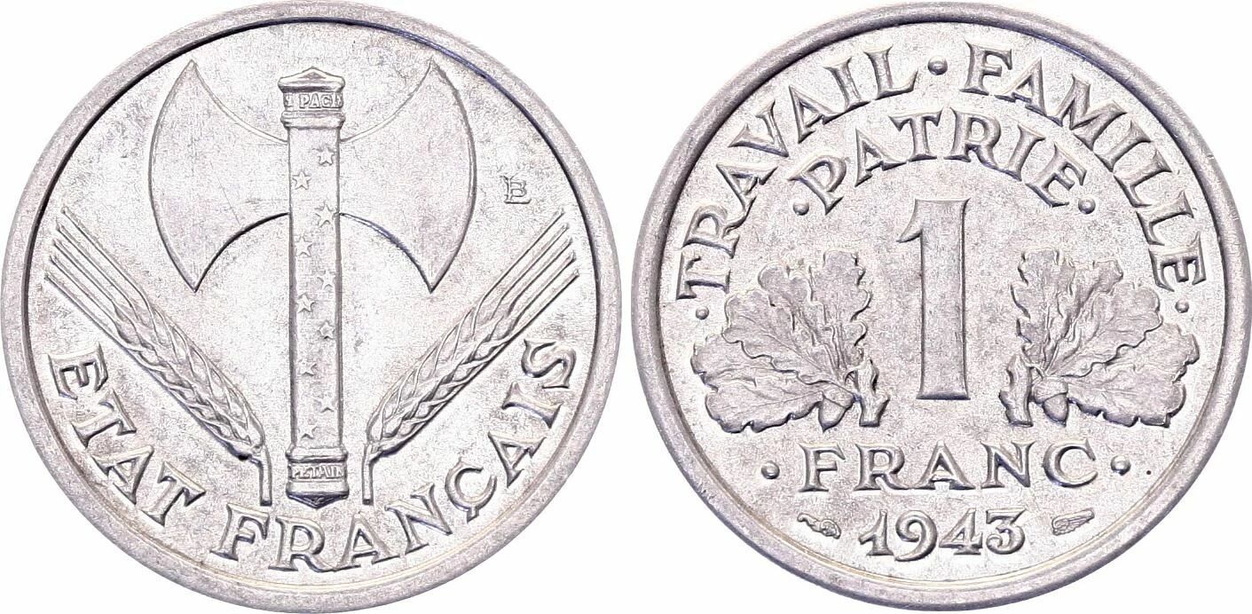 Cette pièce de monnaie est une pièce de 1 Franc, frappée en France en 1943.