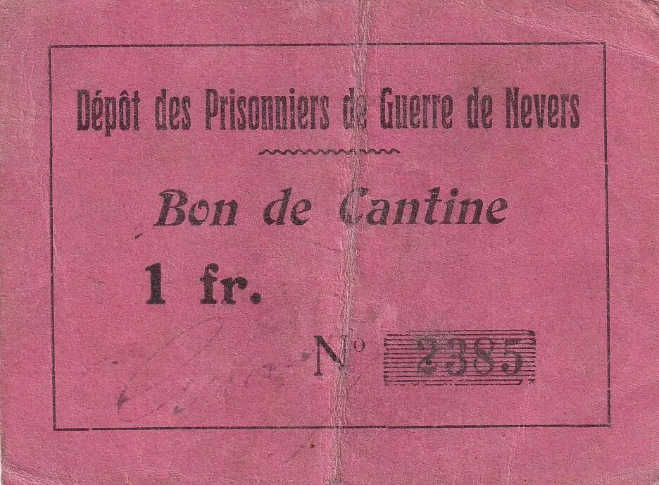 Billet France 1 Franc - Bon de cantine - Dépôt des prisonniers de guerre de Nevers