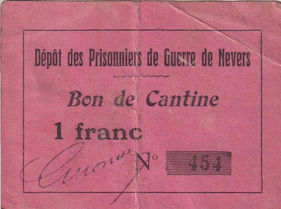 Billet France 1 Franc - Bon de cantine - Dépôt des prisonniers de guerre de Nevers