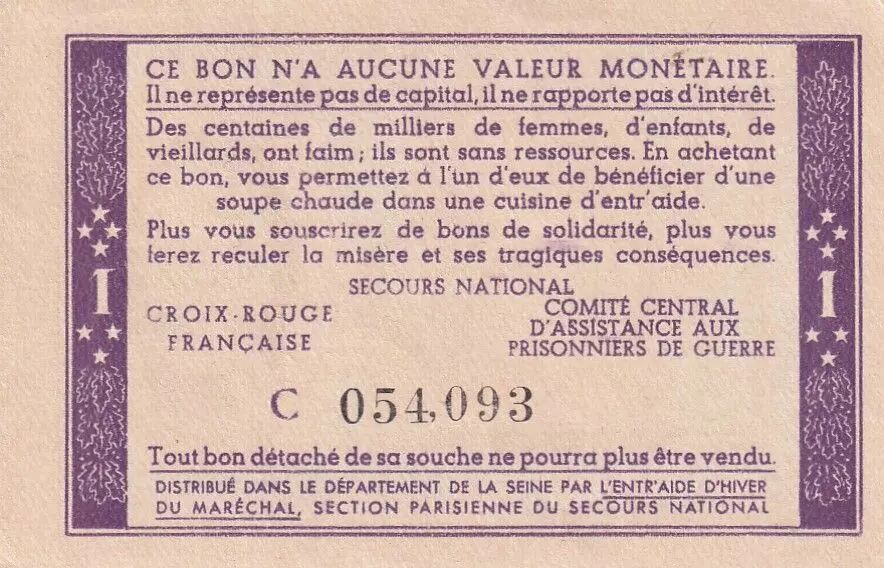 Billet France 1 Franc Bon de Solidarité - 1941-1942 - Série C