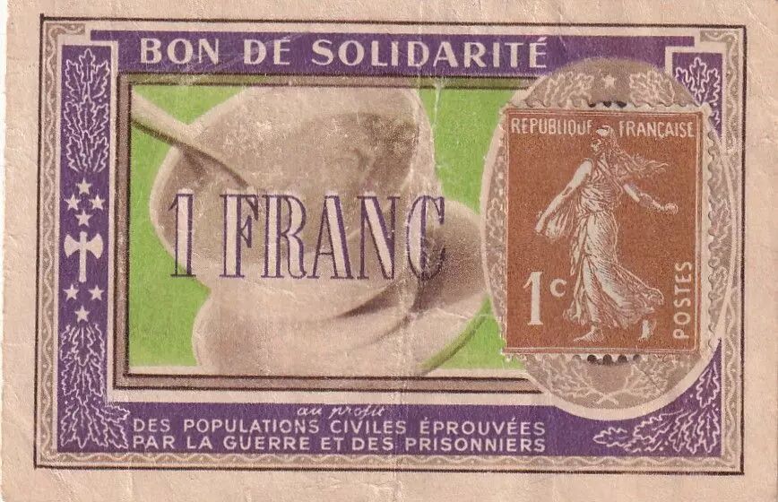Billet France 1 Franc Bon de Solidarité avec timbre - 1941-1942 - Série B