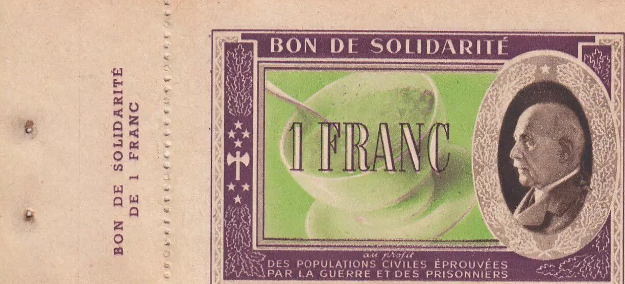 Accueil > Archivage > France 1 Franc Bon de Solidarité Pétain - Bol de Soupe 1941-1942 - SUP