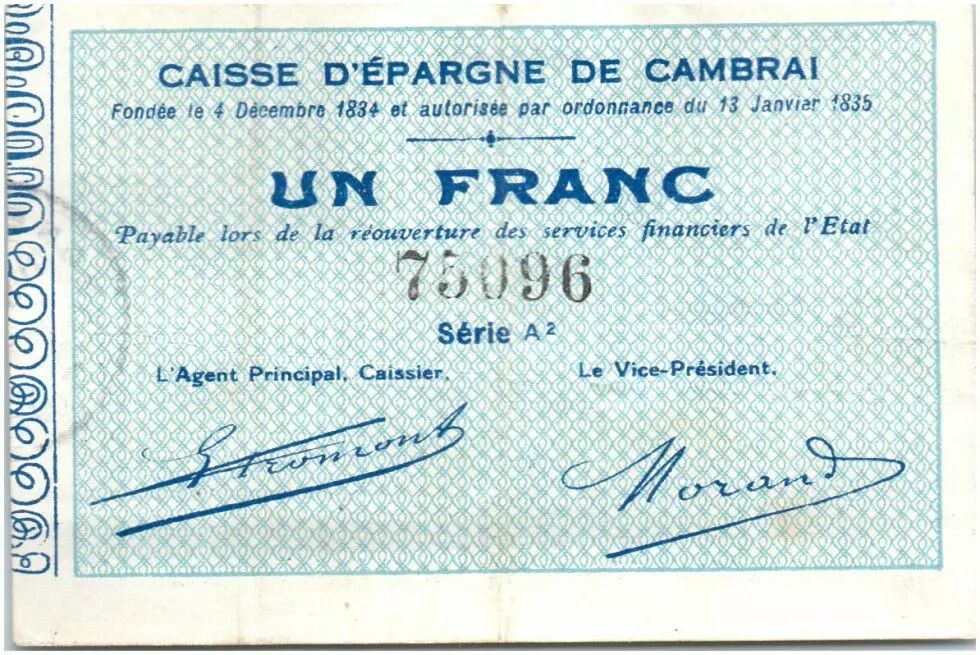 Billet France 1 Franc Cambrai Caisse d'Epargne