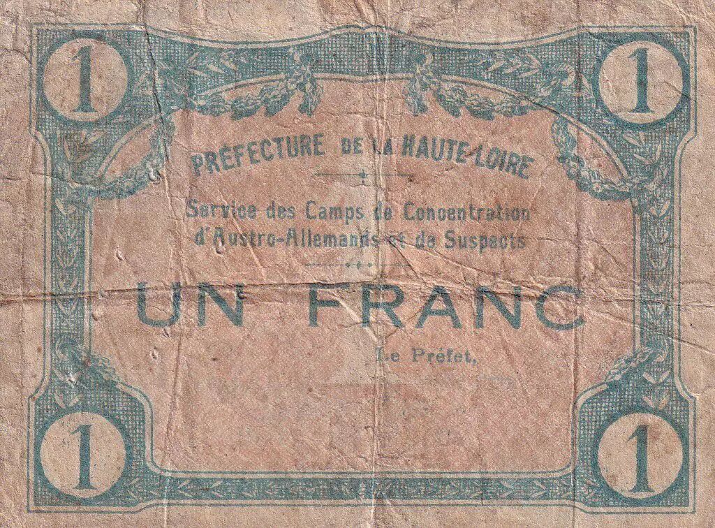 Home > > France 1 Franc - Camp de concentration d'Austro-Allemands et de suspects - Haute-Loire - 1916
