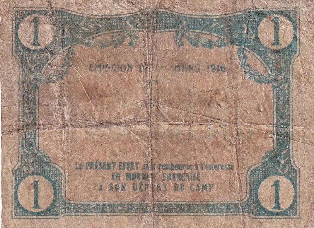 Banknote France 1 Franc - Camp de concentration d'Austro-Allemands et de suspects - Haute-Loire - 1916