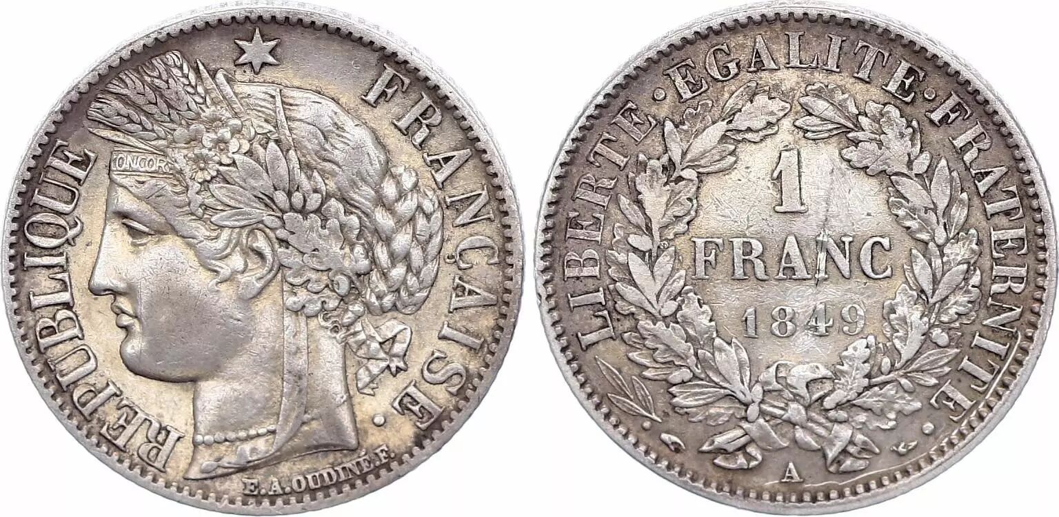 Pièce France 1 Franc - Cérès - 1849 A Paris - Argent