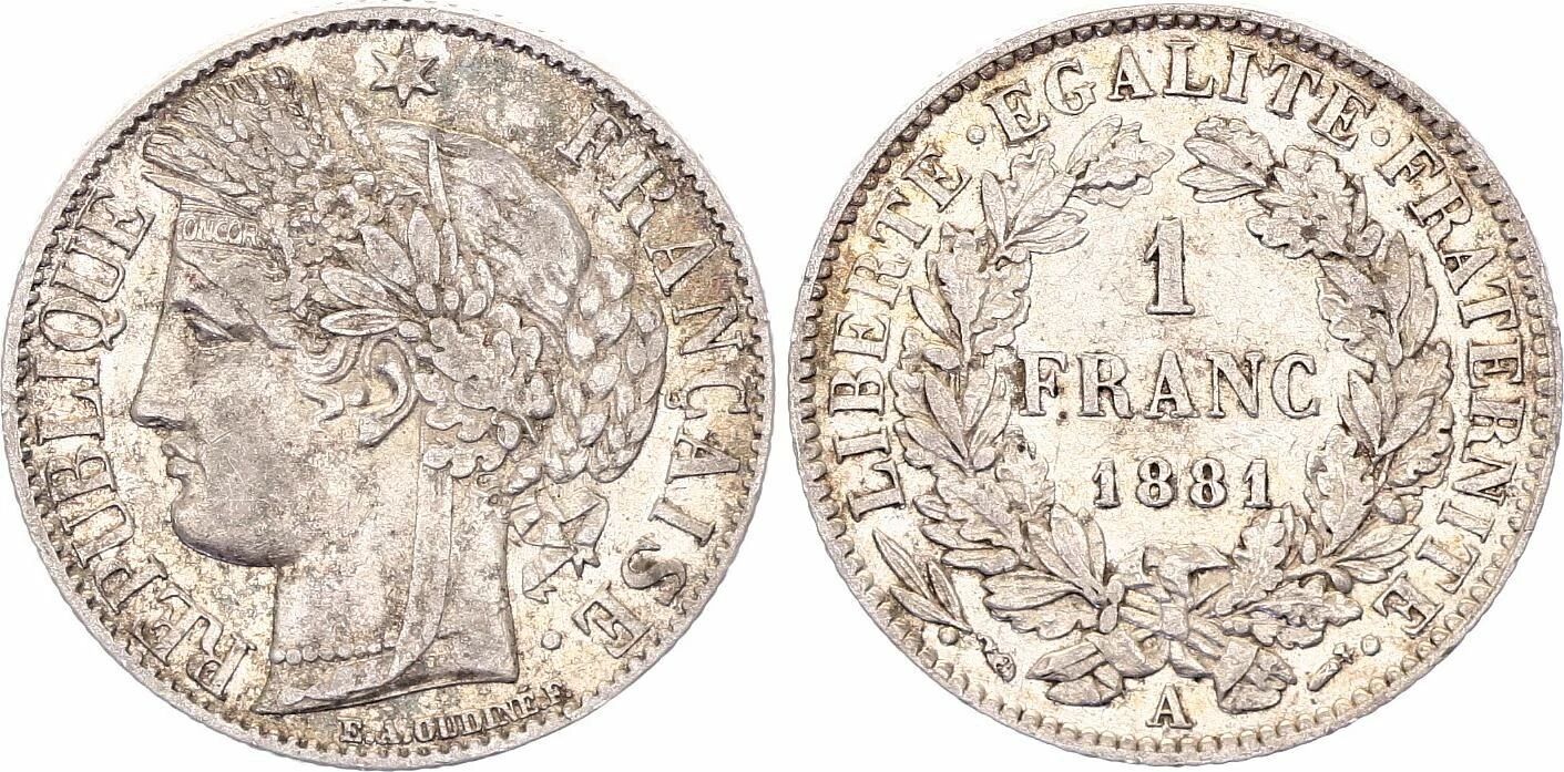 Coin France 1 Franc Ceres - 1881 A Paris - Silver
