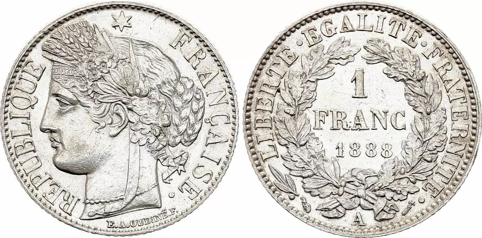 Pièce France 1 Franc Cérès - 1888 A Paris