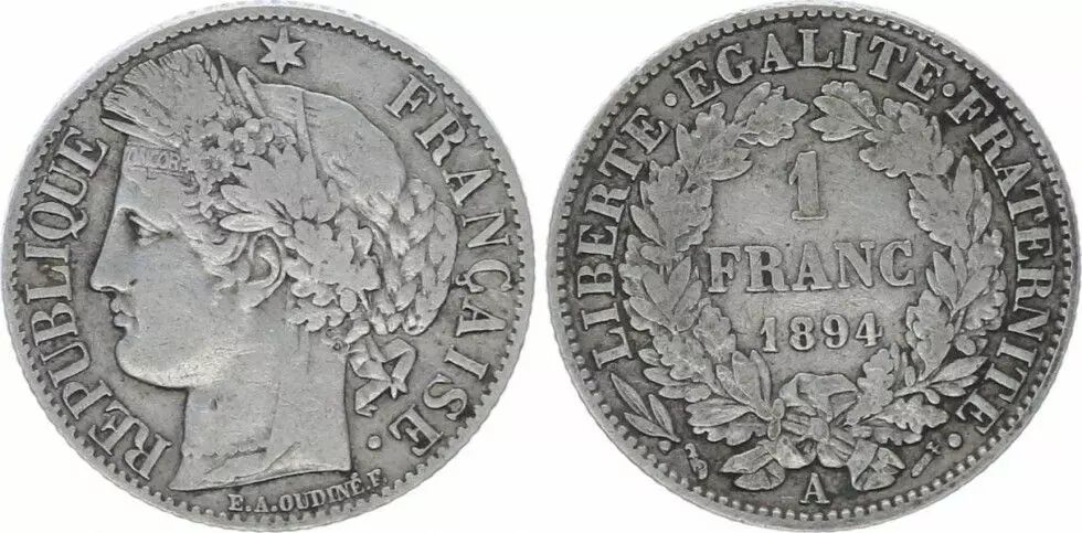Pièce France 1 Franc Cérès - 1894 A Paris - Argent
