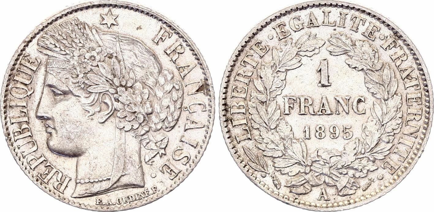 Cette pièce est une pièce de 1 Franc, frappée en argent et émise en France. Elle a été frappée à l'atelier monétaire de Paris, identifié par le différent "A". L'année de frappe de cette pièce est 1895.