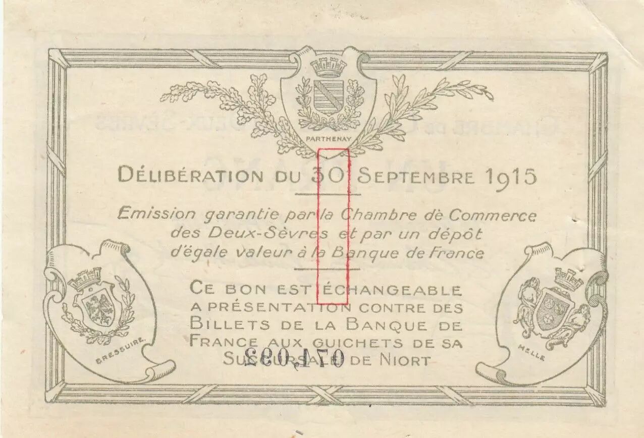 Home > French Banknotes > Necessity Money (1789-1945) > City and Municipal Bonds 1914-1925 > France 1 Franc - Chamber of Commerce - Deux-Sèvres - 30-09-1915 - Serial 071