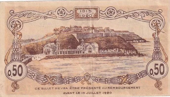 This 50-centime banknote was issued by the Chamber of Commerce of Granville, France, following the deliberation of October 3, 1916. It is part of a temporary issue of emergency currency, a common practice during the First World War to compensate for the lack of liquidity.